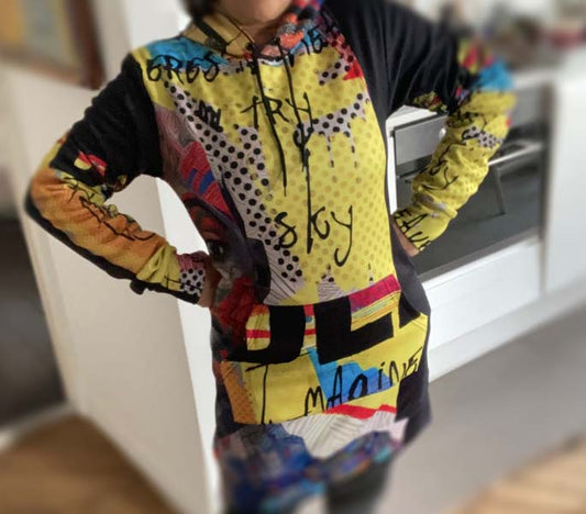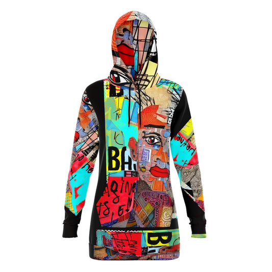 Longline Dress Hoodie African Crafts and Basquiat Themed Drawing