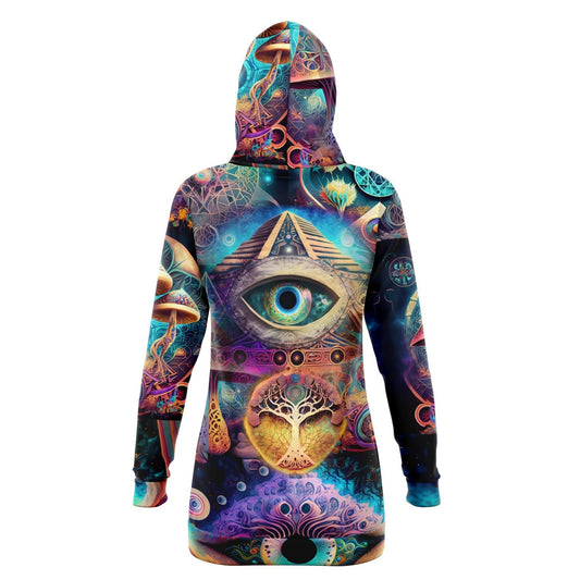 Athletic Longline Hoodie Dress with a Cosmic Eye, Ancient Pyramids, Esoteric Symbol