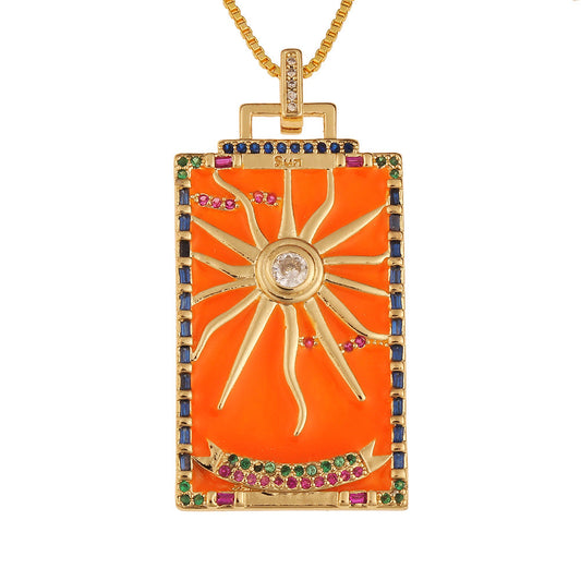 Women's Temperament Fashion Drip Oil Tarot Card Pendant Necklace