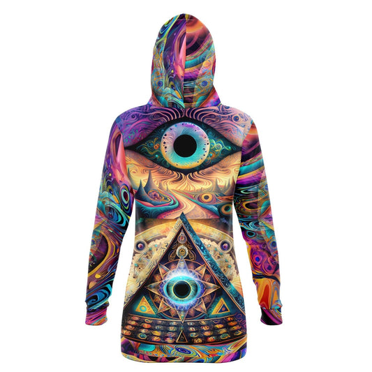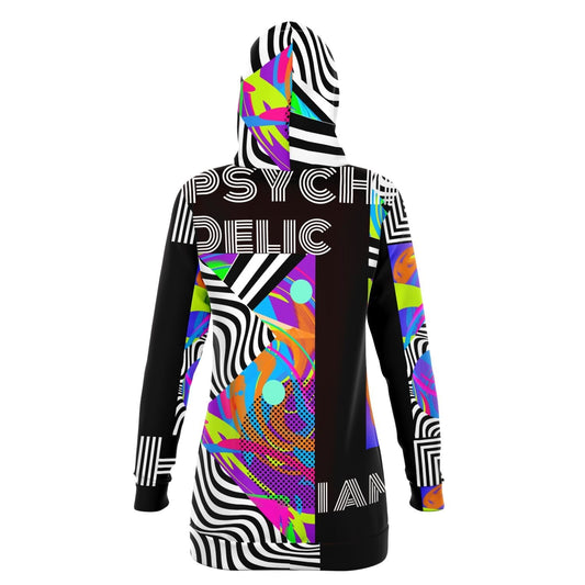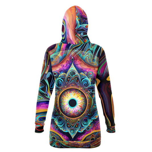 Psychedelic Vibrant Trippy Colors Hoodie Dress Longline Hoodie for Rave Festivals